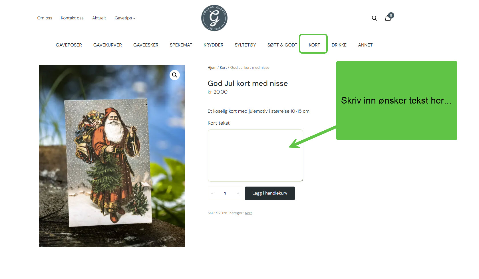 Gå inn på kategorien kort. Du må trykke deg inn på selve kortet for å kunne legge til ønsket tekst.
