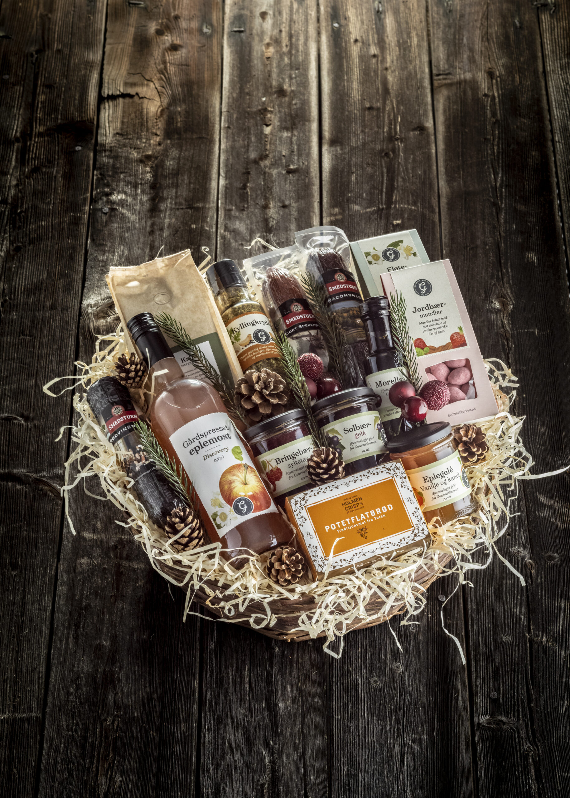 * Alle produktene i gavekurven har lang holdbarhet, og de tåler oppbevaring i romtemperatur.