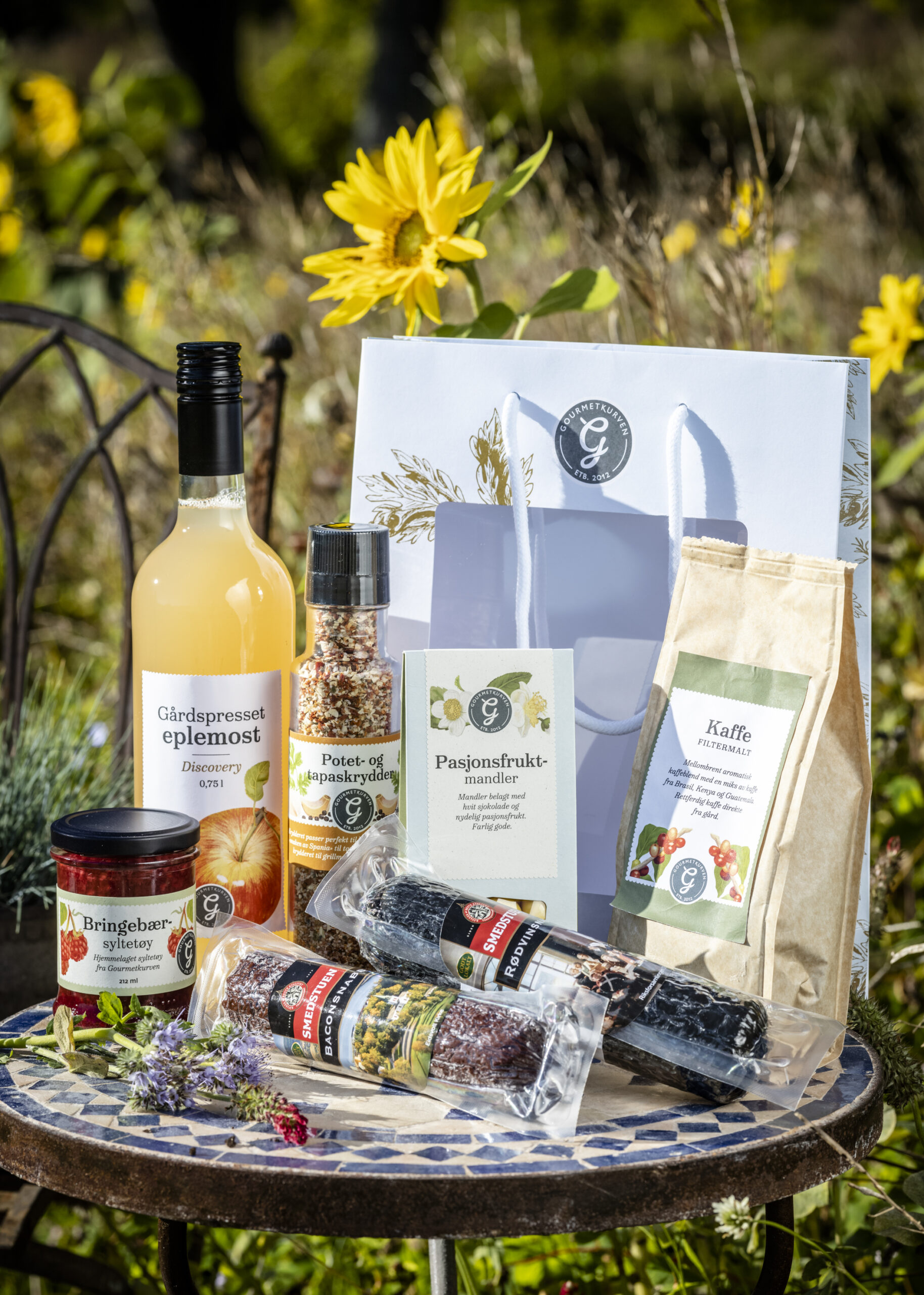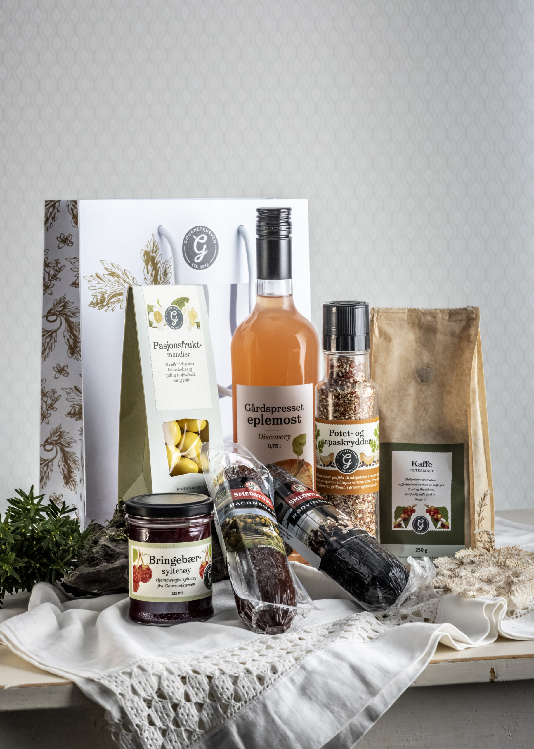 * Alle varene i gaveposen har lang holdbarhet og tåler oppbevaring i romtemperatur.