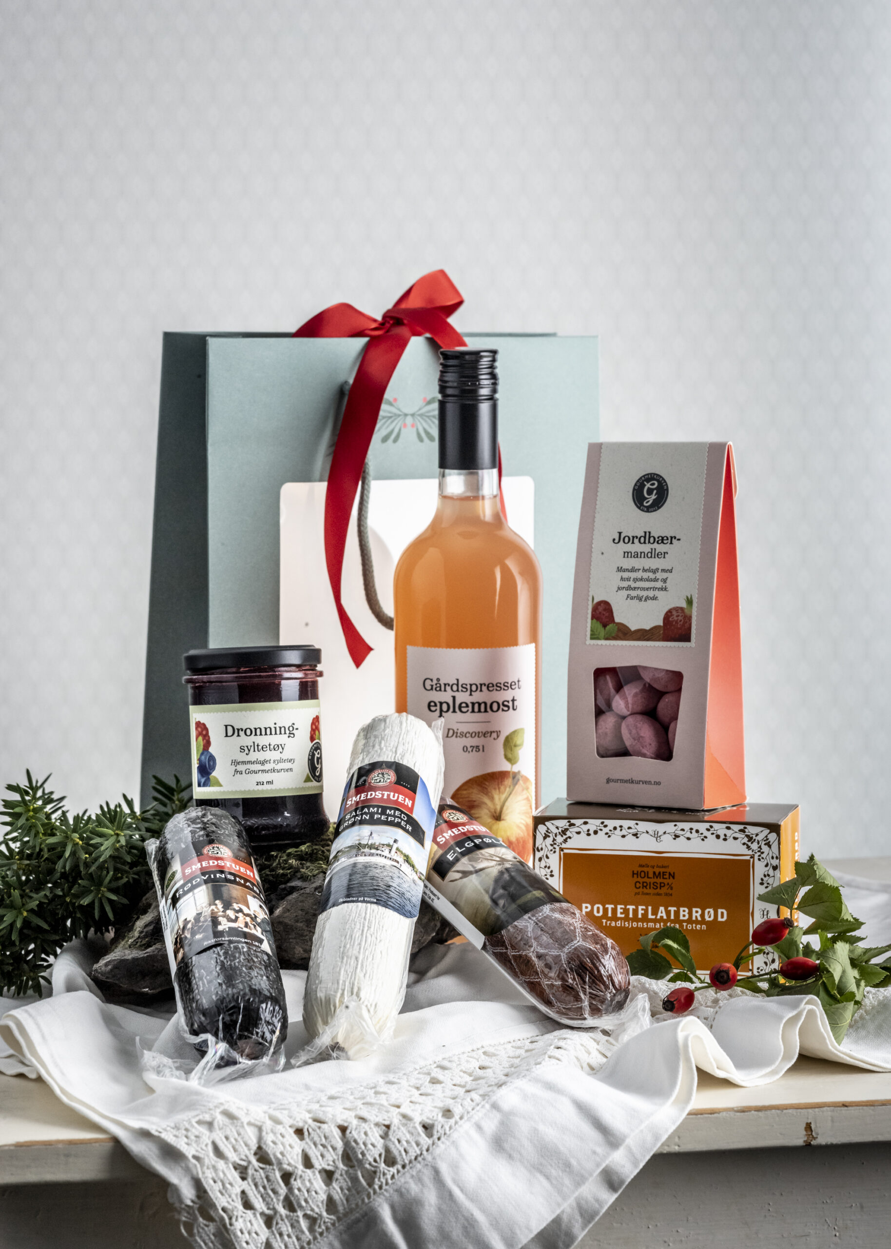 Alle varene i gaveposen har lang holdbarhet og tåler oppbevaring i romtemperatur.
