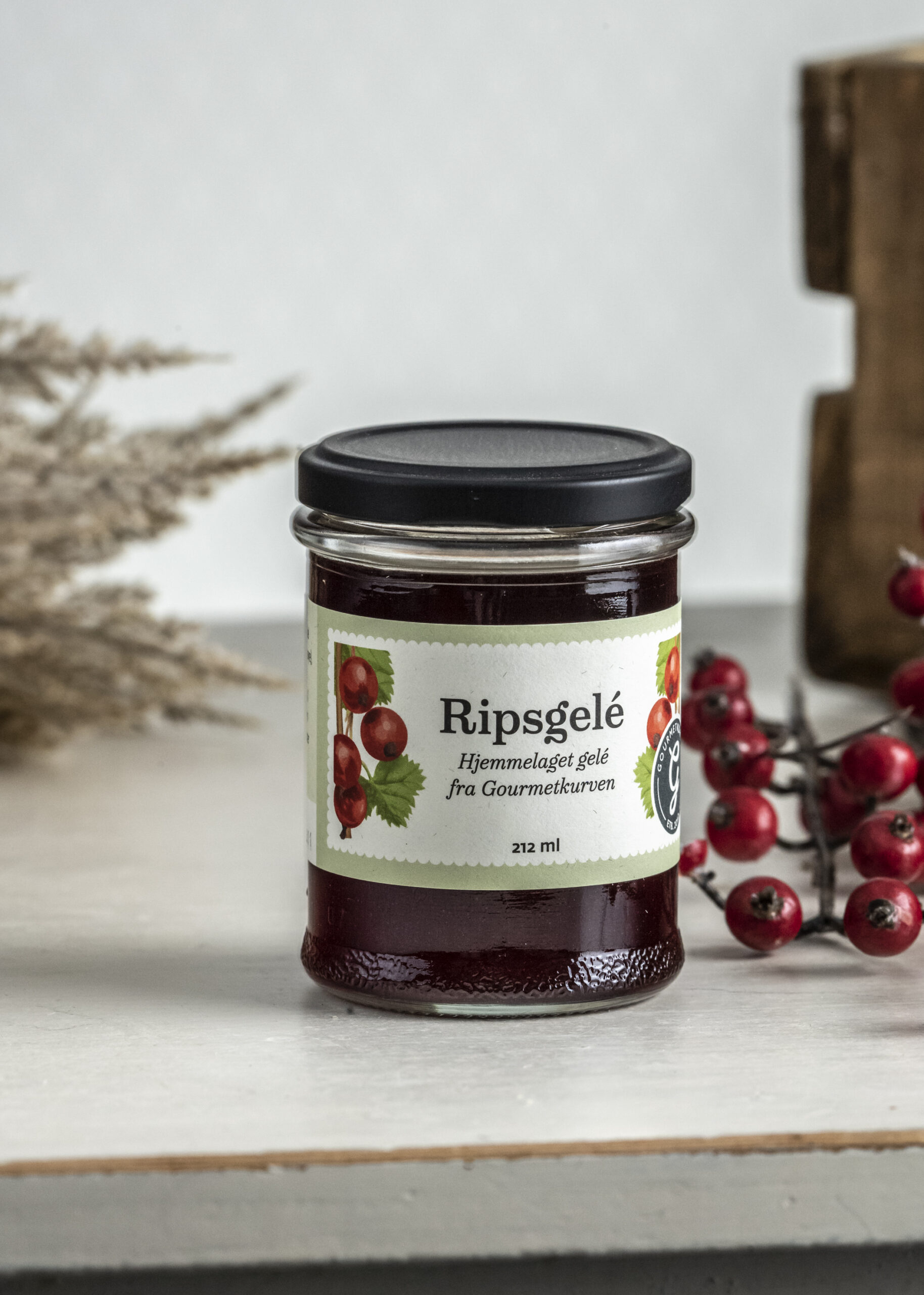 Vår ripsgelé løfter både brødskiva, middagen og ostefatet med sin friske syrlighet og naturlig sødme. Vi lager den av solmodne rips som gir en klar, fruktig smak – balansert, frisk og uimotståelig. Dette er en klassiker i norsk mattradisjon, laget med omtanke og ekte råvarer.