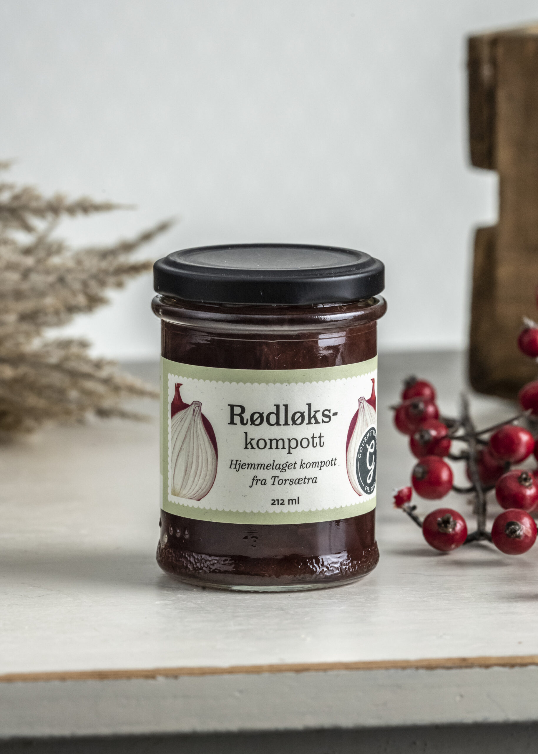 Vi lager vår hjemmelagde rødløkskompott med solbær som en smakfull og allsidig delikatesse som løfter enhver rett. Vi koker den langsomt for å hente frem den naturlige sødmen i rødløken, og tilfører solbærsirup for mild syrlighet og fruktig dybde. Resultatet blir en rik og balansert kompott med sødme, friskhet og et hint av krydder.