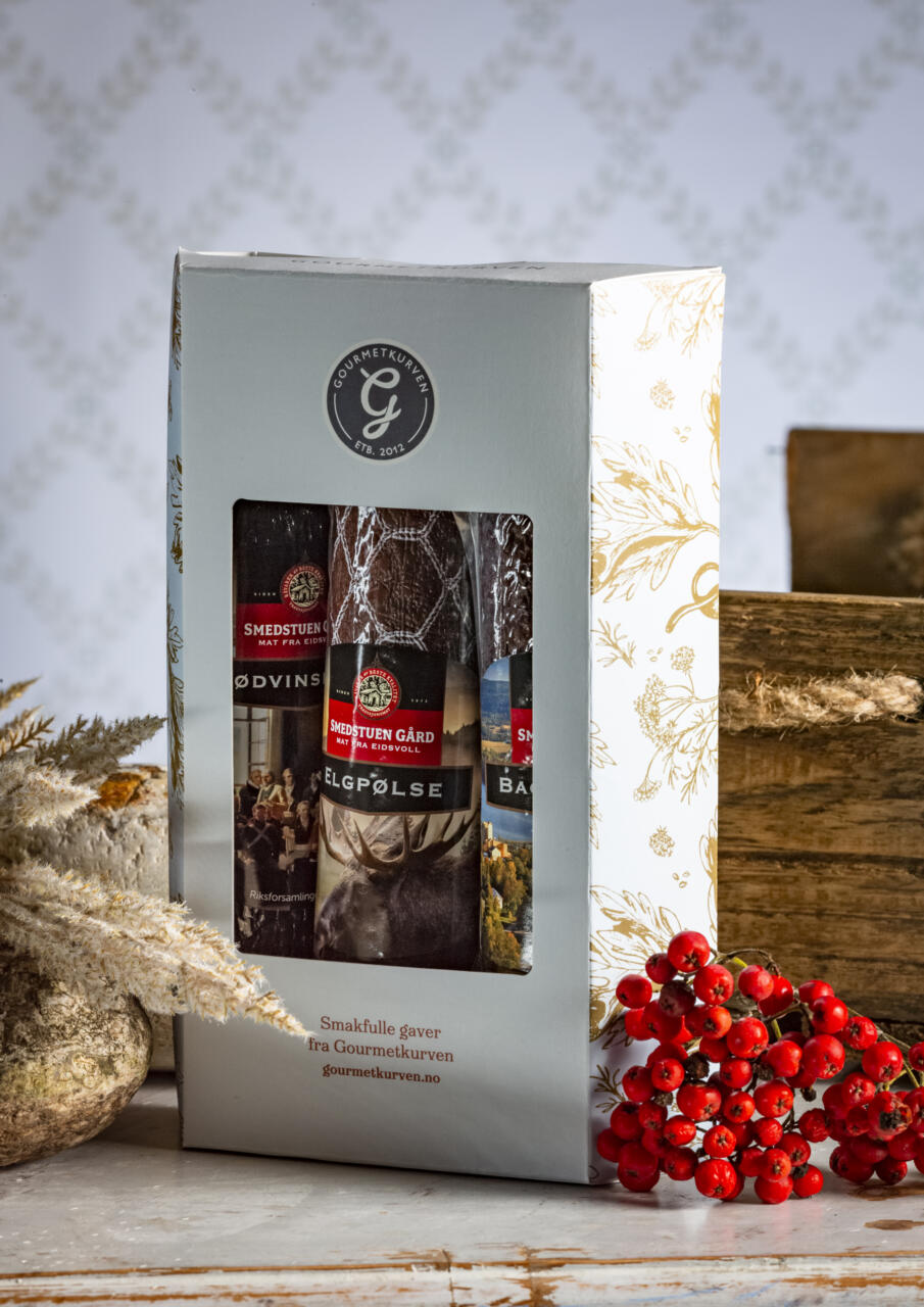 Denne gaveesken med norsk spekemat inneholder tre av våre mest populære spekepølser: