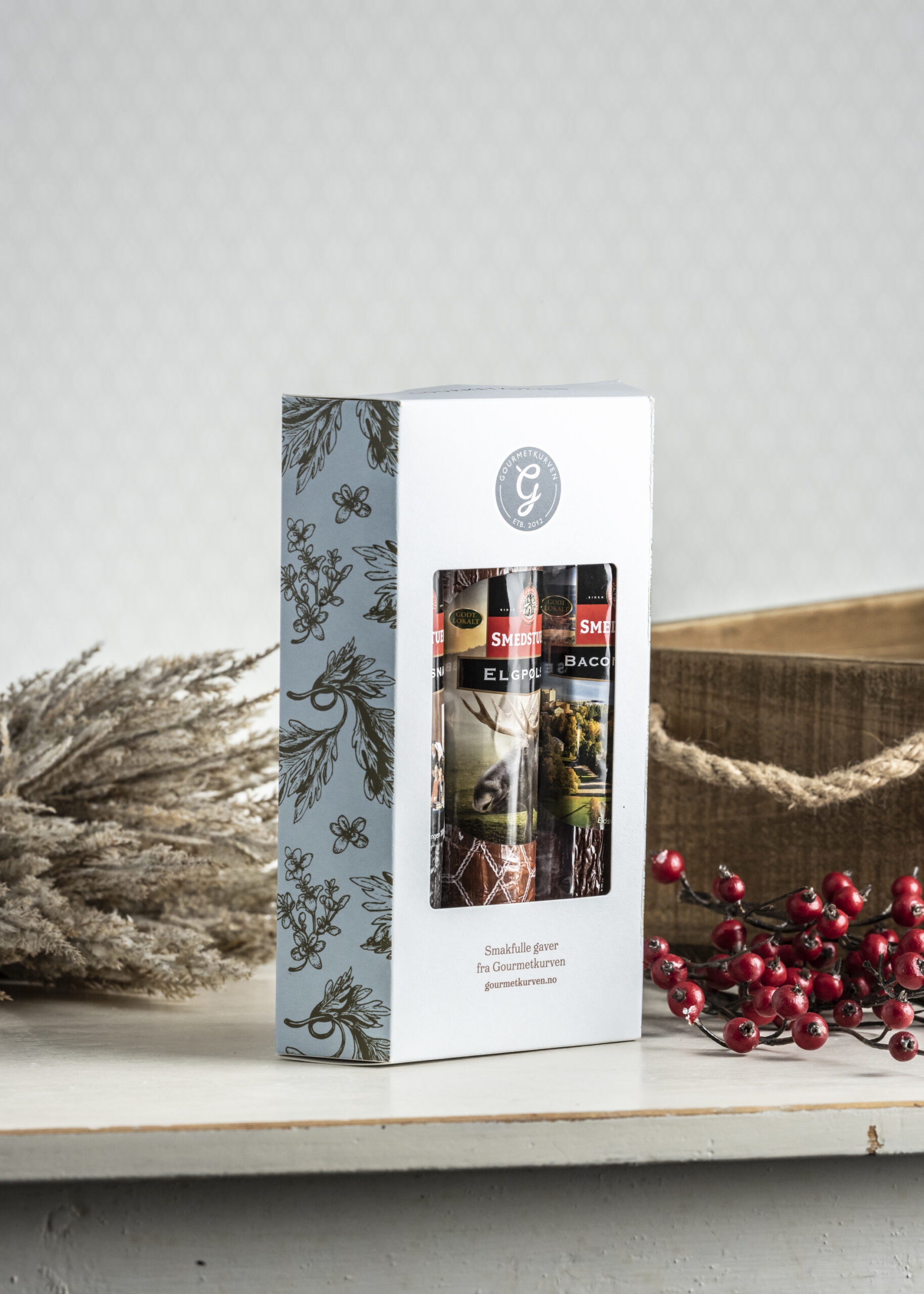 Enten du ønsker å gi bort en smakfull gave, fylle på tapasbordet eller nyte et stykke norsk mattradisjon, byr denne gaveesken på norsk spekemat laget etter oppskrifter fra Smedstuen Gård – ekte, lokal og full av historie.