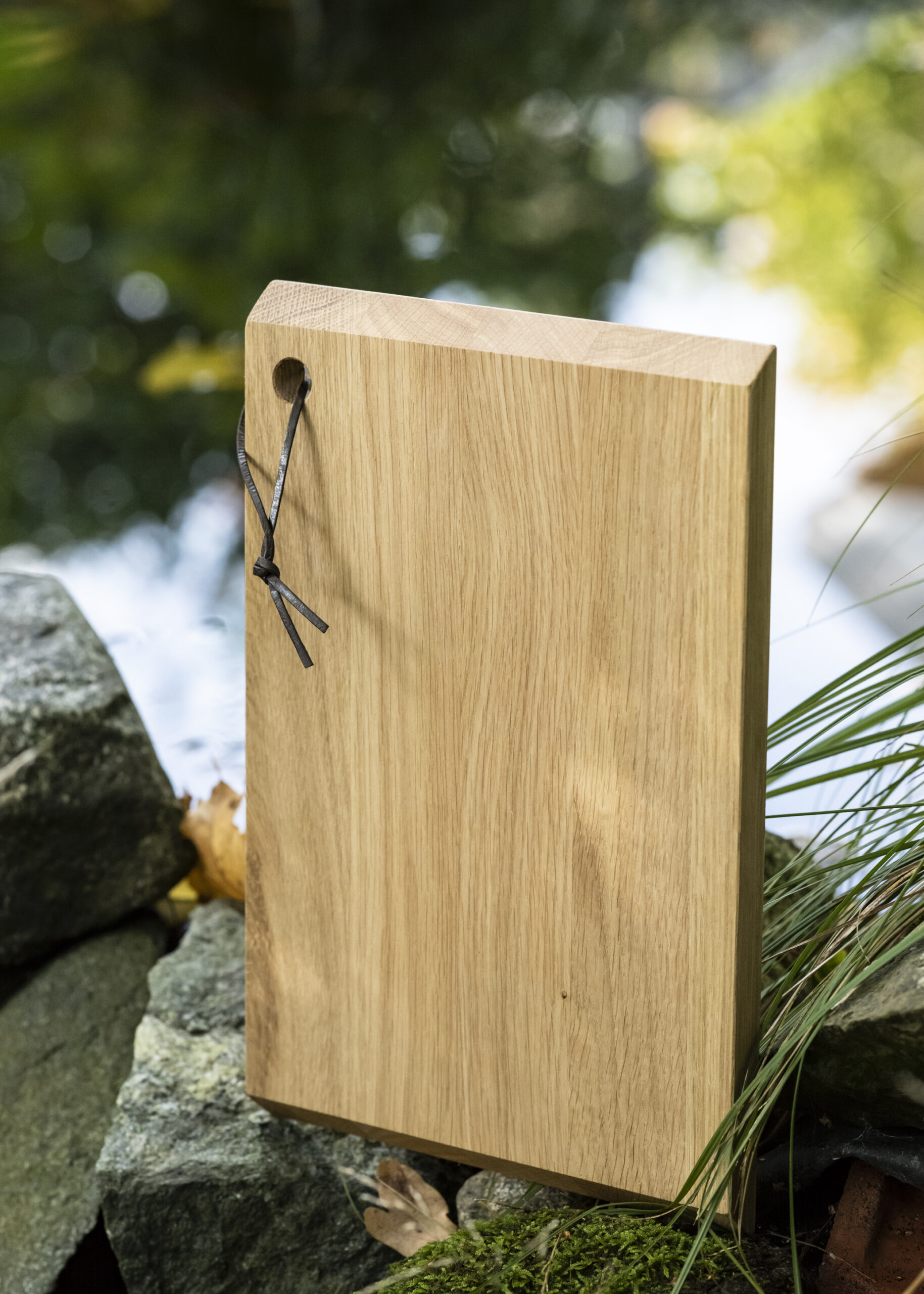 Vokset eikefjøl med lærsnor. Passer fint å gi bort i gave sammen med noen spekepølser.